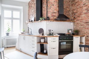 El utilizar ladrillo rojo en la decoración de tu cocina, hace que sus rusticidades le den un balance, y una apariencia moderna a los elementos que la complementan. Por ejemplo, en esta cocina, el ladrillo rojo le da un toque rustico y cálido a las paredes y esto hace que no sea necesario equipar la cocina con demasiadas cosas.