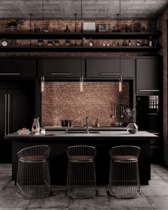 Una de las grandes ventajas del ladrillo es su versatilidad y eso te permite combinarlo con cualquier estilo que quieras llevar en tu hogar. Utiliza materiales con formas abstractas y juega tanto con las luces naturales y/o artificiales. Y descubre como luciría tu cocina con un estilo contemporáneo.