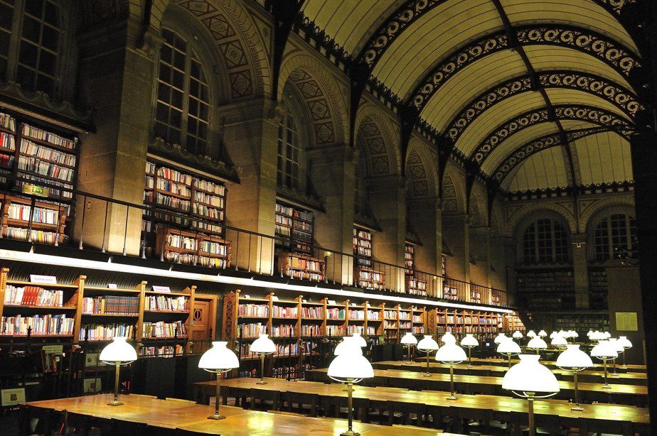 Ésta es la biblioteca intrauniversitaria de la Sorbonne. Esa escuela es una de las más importantes de Francia y el mundo. Su interior fue la inspiración para la Biblioteca Pública de Boston, Massachusetts.