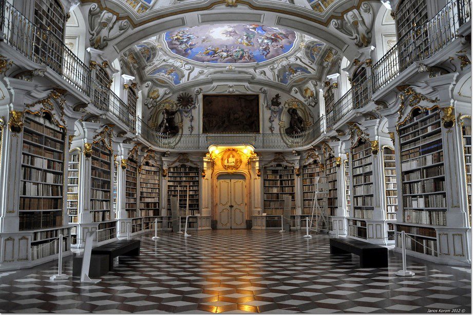 No solo es bello, si no que es interesante. Esta biblioteca tiene dos pasajes secretos que se abren con libros falsos. Más de 200,000 volúmenes viven dentro de sus muros. Prácticamente cualquier título importante publicado en Europa central antes del siglo 18 está incluido.