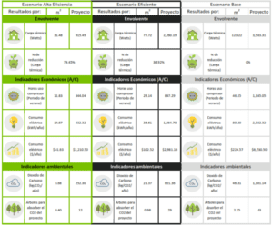 Con base en la información arrojada, el usuario puede determinar que el escenario B es el que menor carga térmica tiene por abatir y por lo tanto requiere la menor inversión en energía para refrigeración durante el verano. Además, gracias a su menor consumo de energía, provoca un menor impacto ambiental comparado con las alternativas A y C.