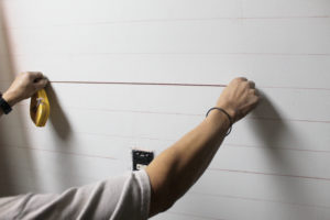 Apóyate con el nivel y el tiralíneas para trazar de forma derecha las líneas de apoyo horizontales sobre la superficie donde vas a instalar el ladrillo.