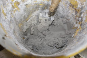 -Prepara la boquilla, siguiendo las instrucciones del empaque, después con una llana distribuye la pasta de boquilla sobre la superficie de ladrillo, espárcelo de forma uniforme para que el acabado se vea hacia un mismo lado.